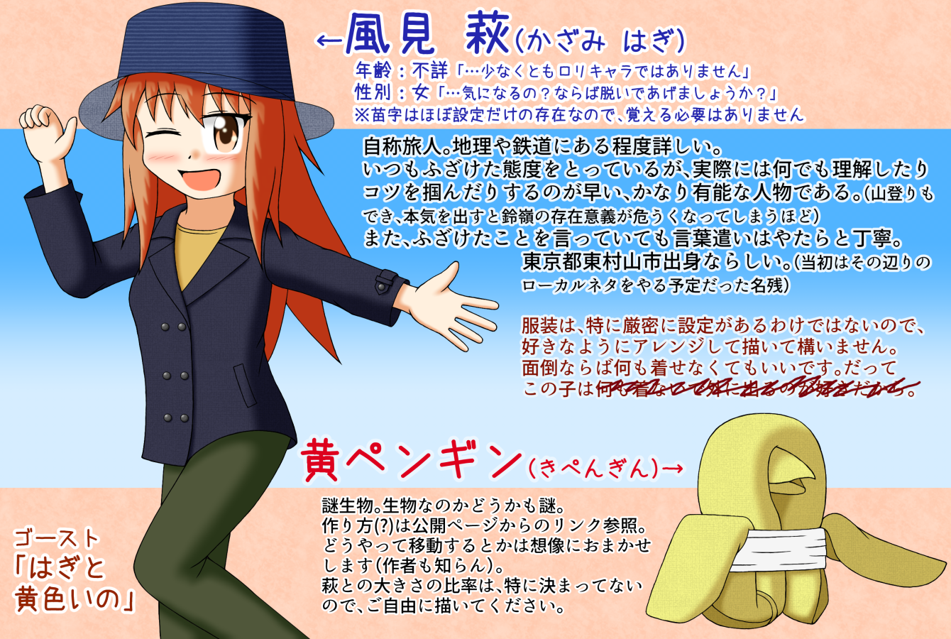 自称旅人の萩と、謎の存在・黄ペンギンのコンビ。